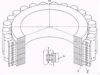 The ratio of parameters of the stator 1 and the rotor 2 in Fig.2 is chosen so that the relation of stator diameter - D and roller diameter - d is an integer equal to or greater then 12. Choosing such ratio allow us to achieve a magnetic spin wave resonant mode between elements of a working body of the device is achieved.